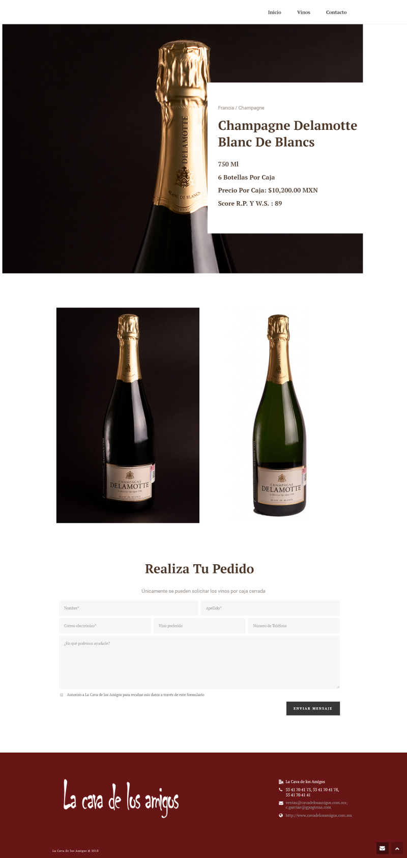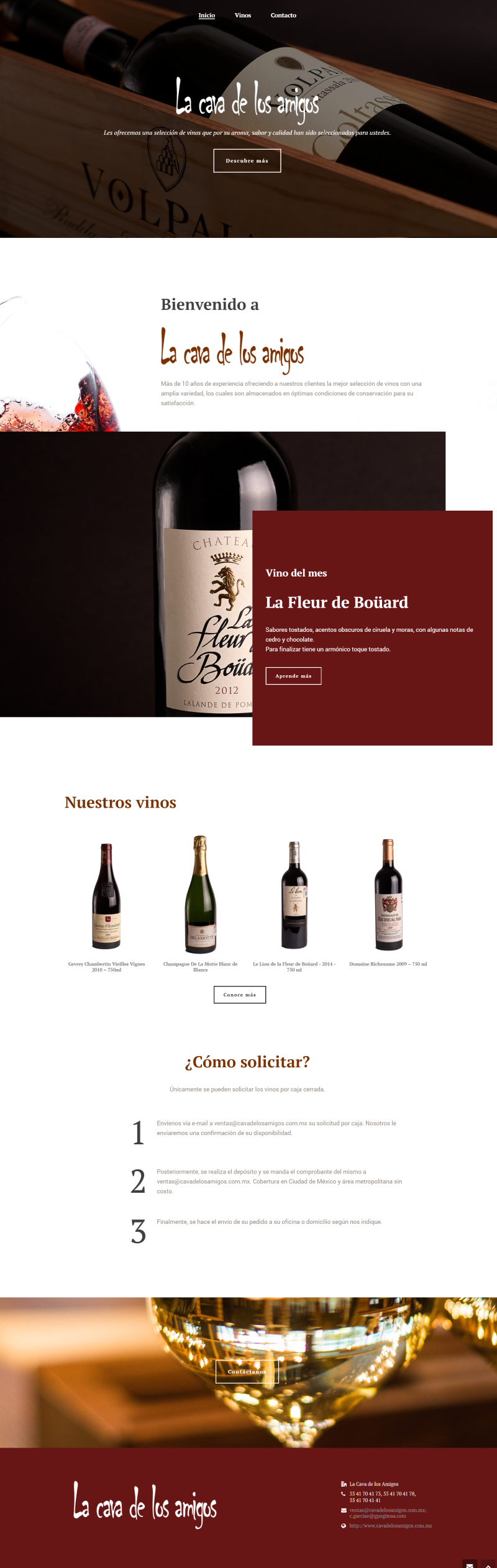 El objetivo de la empresa era mostrar su amplio catálogo de vinos, resaltando las características únicas de forma individual. Permitiendo al usuario elegir una opción y establecer contacto con la empresa.